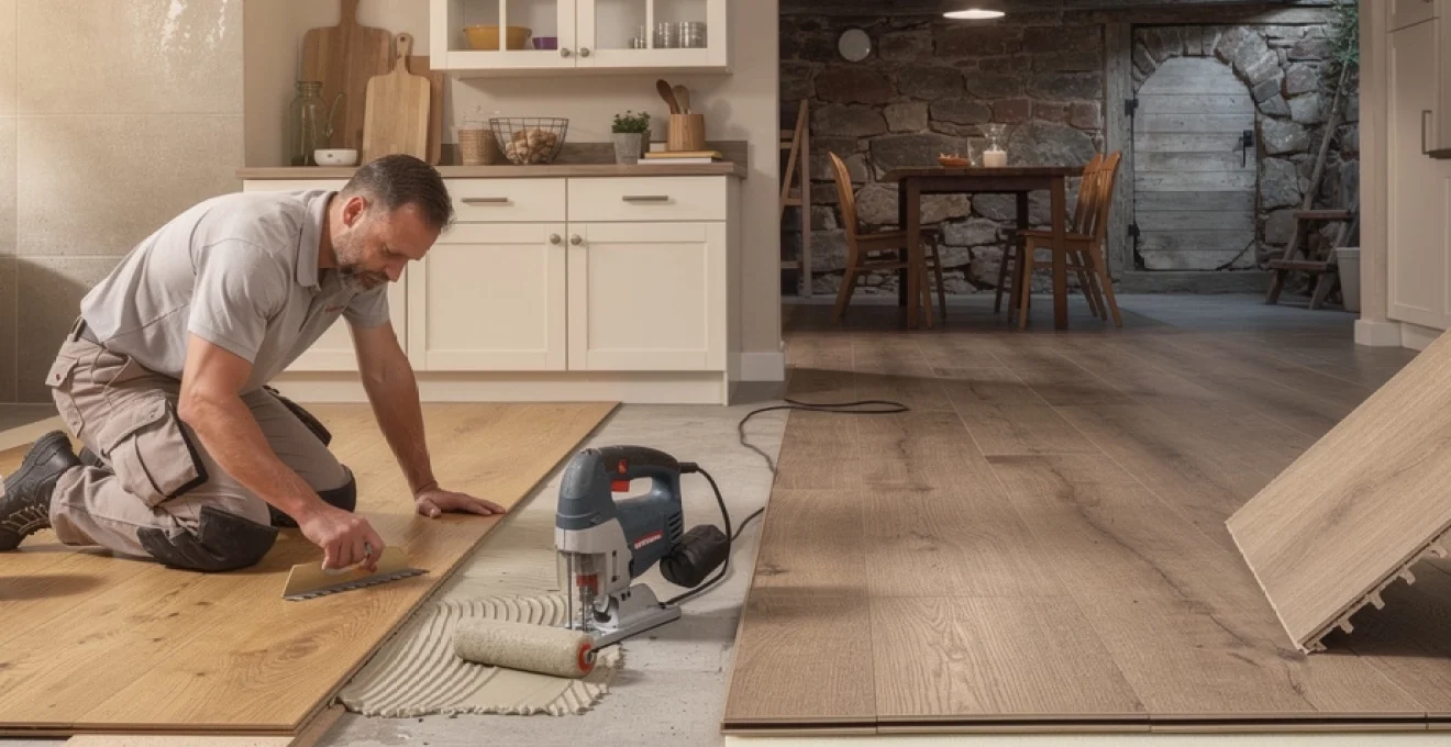 La cave et les locaux semi-enterrés représentent un cas à part : l’humidité relative y est souvent élevée et le risque de remontées capillaires important. Dans ces environnements, le parquet bois, qu’il soit collé ou clipsé, reste généralement déconseillé tant que des mesures structurelles de drainage ou de déshumidification n’ont pas été mises en place. On privilégiera plutôt un revêtement minéral ou un sol vinyle spécifique. Si vous tenez absolument à un effet parquet en sous-sol, des lames LVT (vinyle) ou des sols PVC imitation bois constituent une alternative bien plus sécurisante.